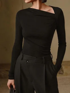 Лонгслив асимметричный облегающий с драпировкой
