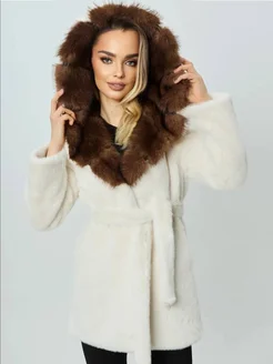 Шубка под норку с капюшоном соболь 75 см