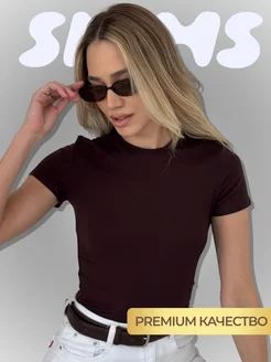 Базовая футболка SKIMS облегающая коричневая