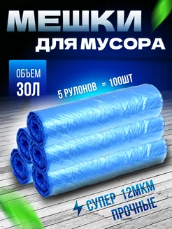 Мешки для мусора 30 л прочные 100 шт без завязок широкие