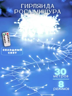 Гирлянда роса мишура светодиодная 30 м с пультом