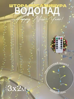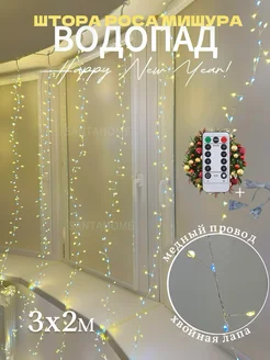 Гирлянда штора мишура водопад светодиодная 3x2 хвойная лапа