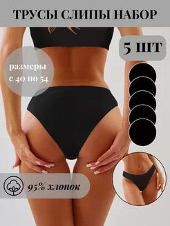 трусы слипы гладкие хлопок черные набор 5 шт