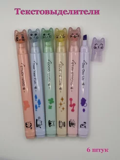 Текстовыделитель маркер кошачья мордочки 6 шт
