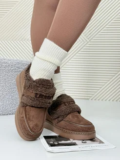 Лоферы зимние из натуральной замши слипоны угги низкие
