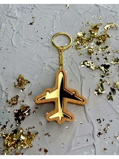 Брелок для ключей самолет деревянный золотой