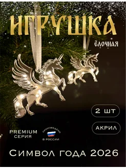 Елочная игрушка лошадь пегас символ года 2026 набор 2 шт