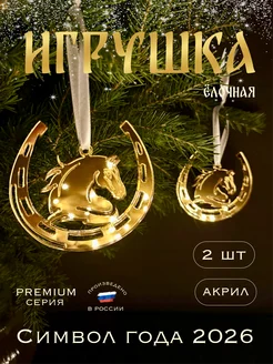 Елочная игрушка лошадь подкова символ года 2026 набор 2 шт