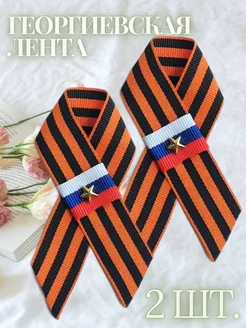 Георгиевская лента брошь с флагом 9 мая 2шт