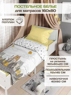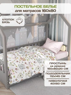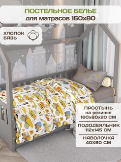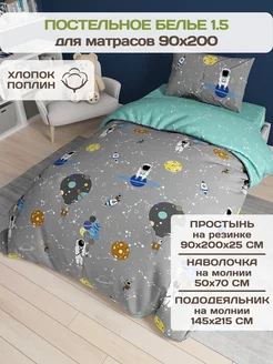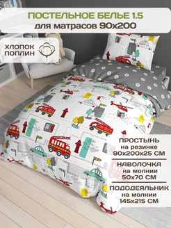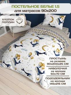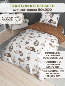 Постельное белье 1.5 спальное с простыней на резинке 90х200