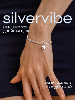 Браслет серебро 925 сердце цепи