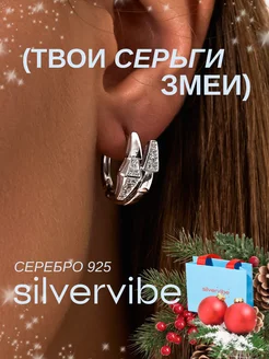 Серьги серебро 925 змея