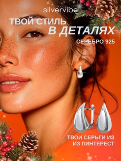 Серьги серебро 925 геометрические капля