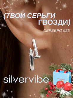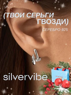 Серьги серебро 925 гвоздь