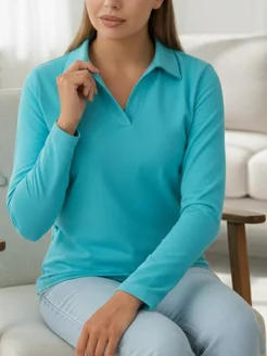 Лонгслив поло облегающий с длинным рукавом