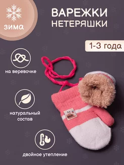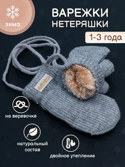 Зимние варежки нетеряшки на веревочках с мехом