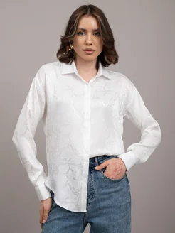 Атласная блузка оверсайз нарядная шелковая рубашка