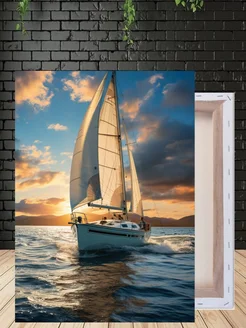 Картина яхта море на холсте 50 на 70 на стену для интерьера