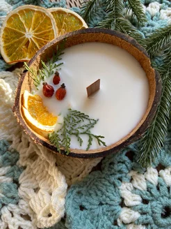 Свеча в кокосе ароматическая новогодняя