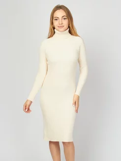 Теплое вязаное платье лапша с горлом и разрезом сзади