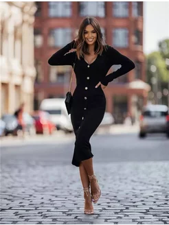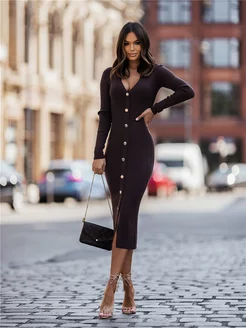 Вечернее праздничное платье лапша на пуговицах с разрезом