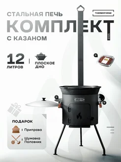 Казан чугунный с крышкой 10л плоское дно с треногой