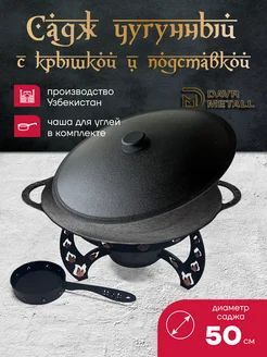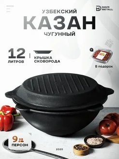 Казан чугунный 8 литров Наманган плоское дно с крышкой