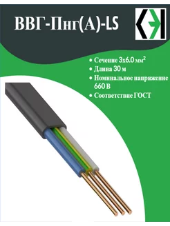 Кабель Силовой ВВГп-нг(А)-LS 3х6 30 м