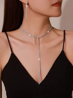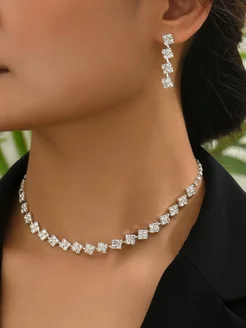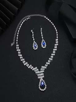 Колье и серьги с фианитами и стразами в подарочном мешочке