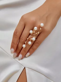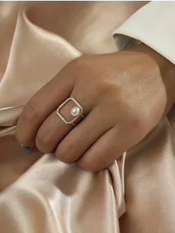 Кольцо с жемчугом безразмерное в подарочном мешочке
