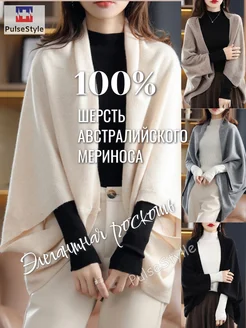 Кардиган жакет-накидка из 100% шерсти мериноса