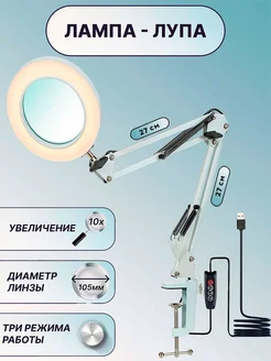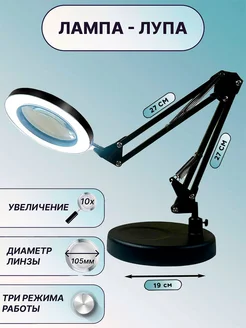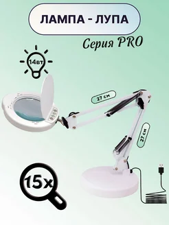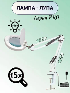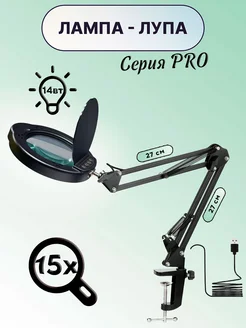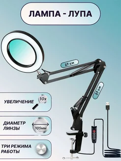 Лампа настольная с лупой с подсветкой на струбцине, 27x27 см
