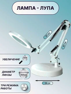 Лампа настольная с лупой 10X, с подсветкой, на подставке Ø19