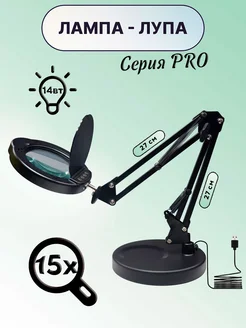 Лампа настольная с лупой 15Х, на струбцине, пульт ДУ