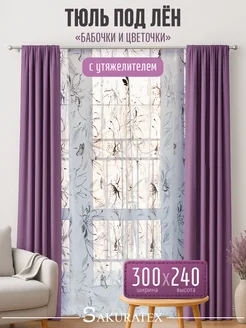 Тюль под лен 300х240 в спальню