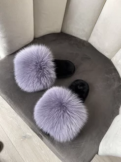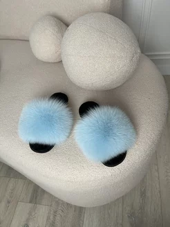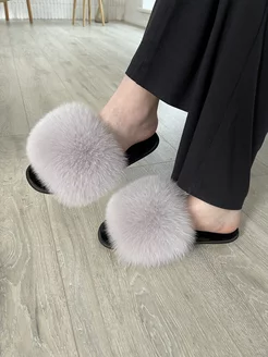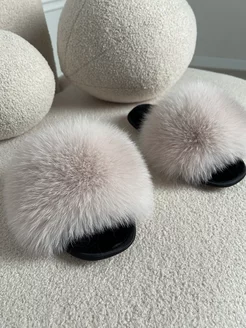 тапочки мягкие женские домашние теплые с мехом песца белые