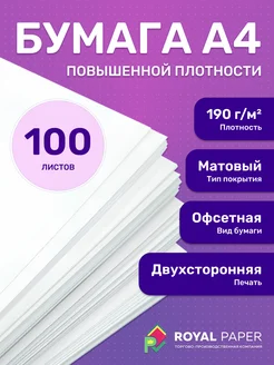 Плотная бумага для принтера А4, 190 гр.м2, Белая - 100 лист