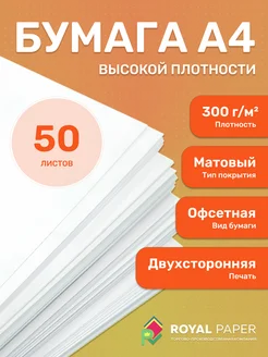 Бумага офсетная А4, плотная-белая, 300 гр.м2 - 50 листов