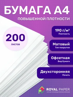 Плотная бумага для принтера А4, 190 гр.м2, Белая - 200 лист
