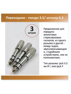 Гнездо 3,5 стерео, на штекер 6,3 - 3 штуки