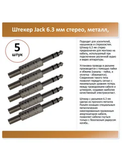 Штекер 6,3 стерео, металл, под пайку - 5 штук
