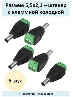 Разъем 5,5х2,1 штекер c клеммной колодкой под винт - 5 штук