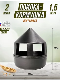 Поилка-кормушка 1,5 л для голубей 2 шт (чёрная)