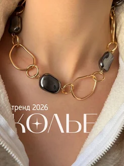 Колье цепь с крупными звеньями и камнями гематин