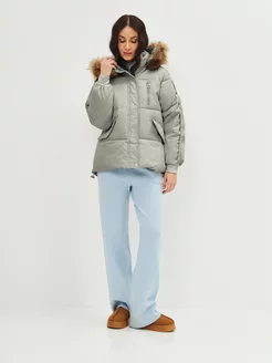 Зимняя утепленная куртка с капюшоном и мехом короткая