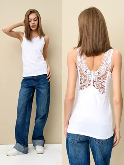 Майка базовая с кружевом бельевая