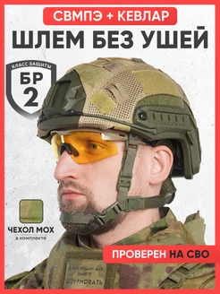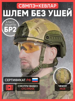 Шлем СВМПЭ военный тактический без ушей с чехлом мох