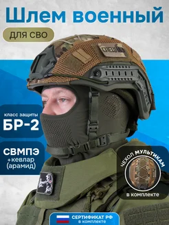 Шлем СВМПЭ военный тактический без ушей с чехлом мультикам
