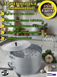 Мантоварка алюминиевая 15 л 4 диска Россия МШ-018