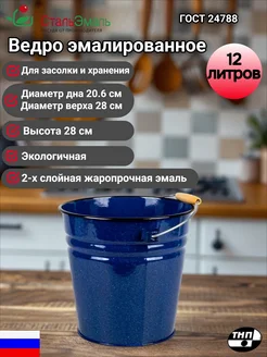 Ведро эмалированное 12,0л без крышки синее с зерном